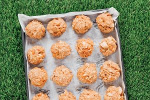 Shape: Scoop heaping tablespoons of the dough, rolling them into balls.